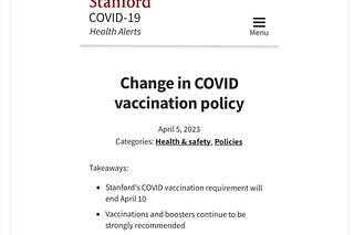 Stanford has fallen: they will no longer be requiring vaccination for students on April 10, 2023