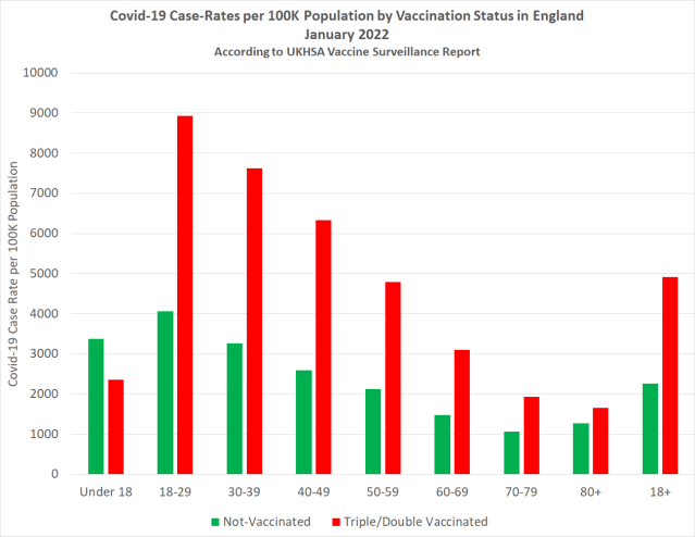 If the vaccine works and should be mandated, then why are 9 in 10 deaths in the UK in vaccinated people? Refer to the chart on page 14 of the UK govt. report and check between ages 40 and 79: the infection rates per 100,000 people are higher in the doubly vaccinated. There is no way to explain this if the vaccine worked: