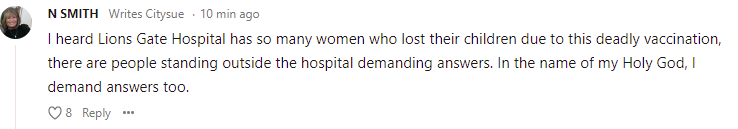 The fact check says “Vancouver Coastal Health says people spreading rumors have no association with Lions Gate Hospital.”