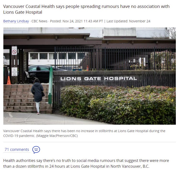 There was a “fact check” disputing this published in CBC news: False claims of stillbirths among vaccinated mothers at B.C. hospital slammed as harmful disinformation.