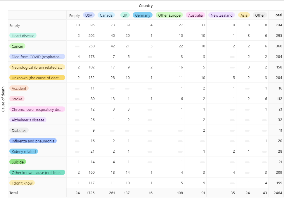 I did a survey recently where I asked people to report cause of deaths for deaths in 2021 and beyond.
