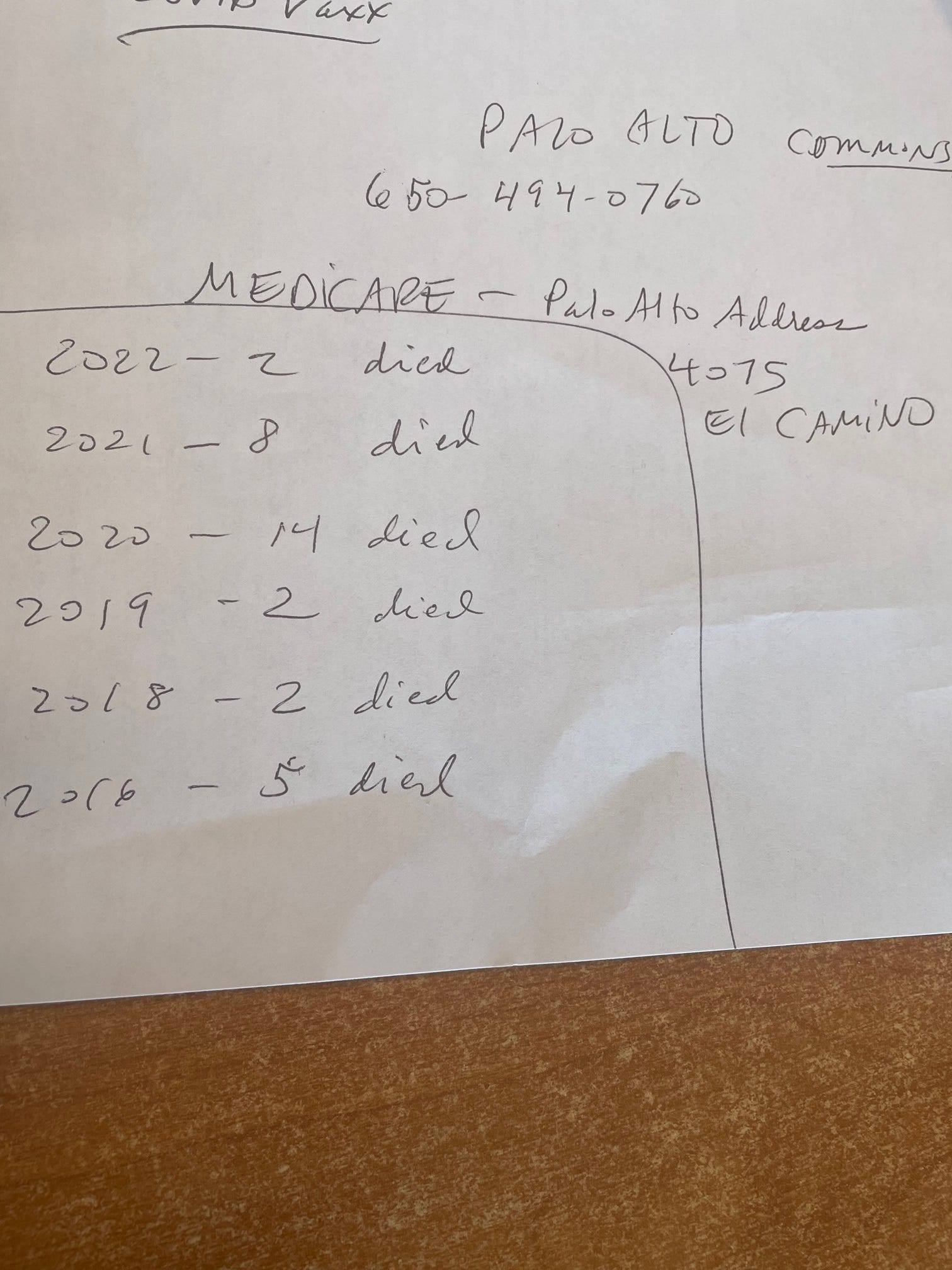 Past deaths at Palo Alto Commons (Medicare numbers)