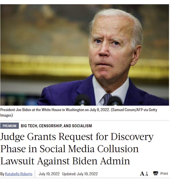 This news article in the Epoch Times announcing that a free speech case brought by two state attorney generals is a big deal.