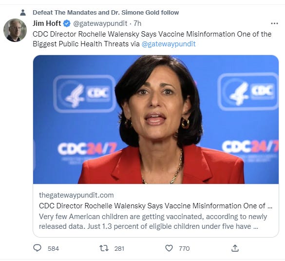 For reasons we have never understood, those supporting the government narrative have only tried method #1. Today, three years later, the results are now very clear: it hasn’t worked at all. In fact, it has done the opposite: it has made things much worse. Today, fewer people than ever are believing government authorities and the number of “misinformation spreaders” has grown dramatically. Every single day, there are many more people moving to our side of the narrative than to your side. Every time you release a new booster, few and fewer people are taking it. Today, just 1.3% of eligible children under 5 have been vaccinated with the COVID vaccine, a fact you readily concede. The low acceptance rate for your narrative isn’t because parents haven’t heard your arguments; it is because the credibility of the CDC is now at an all time low. As time goes on, fewer and fewer people are believing the CDC and more and more are siding with our side of the narrative. Even though you are outspending us by at least 10,000:1 on marketing, you are losing badly. Thus, method #1 is a losing strategy by any objective measure.