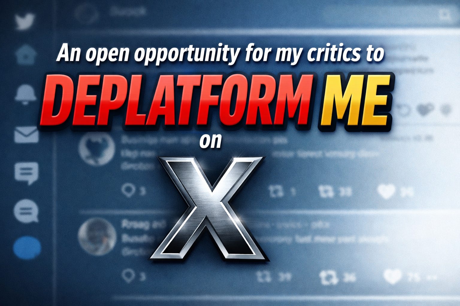 An open opportunity for my critics to deplatform me on X