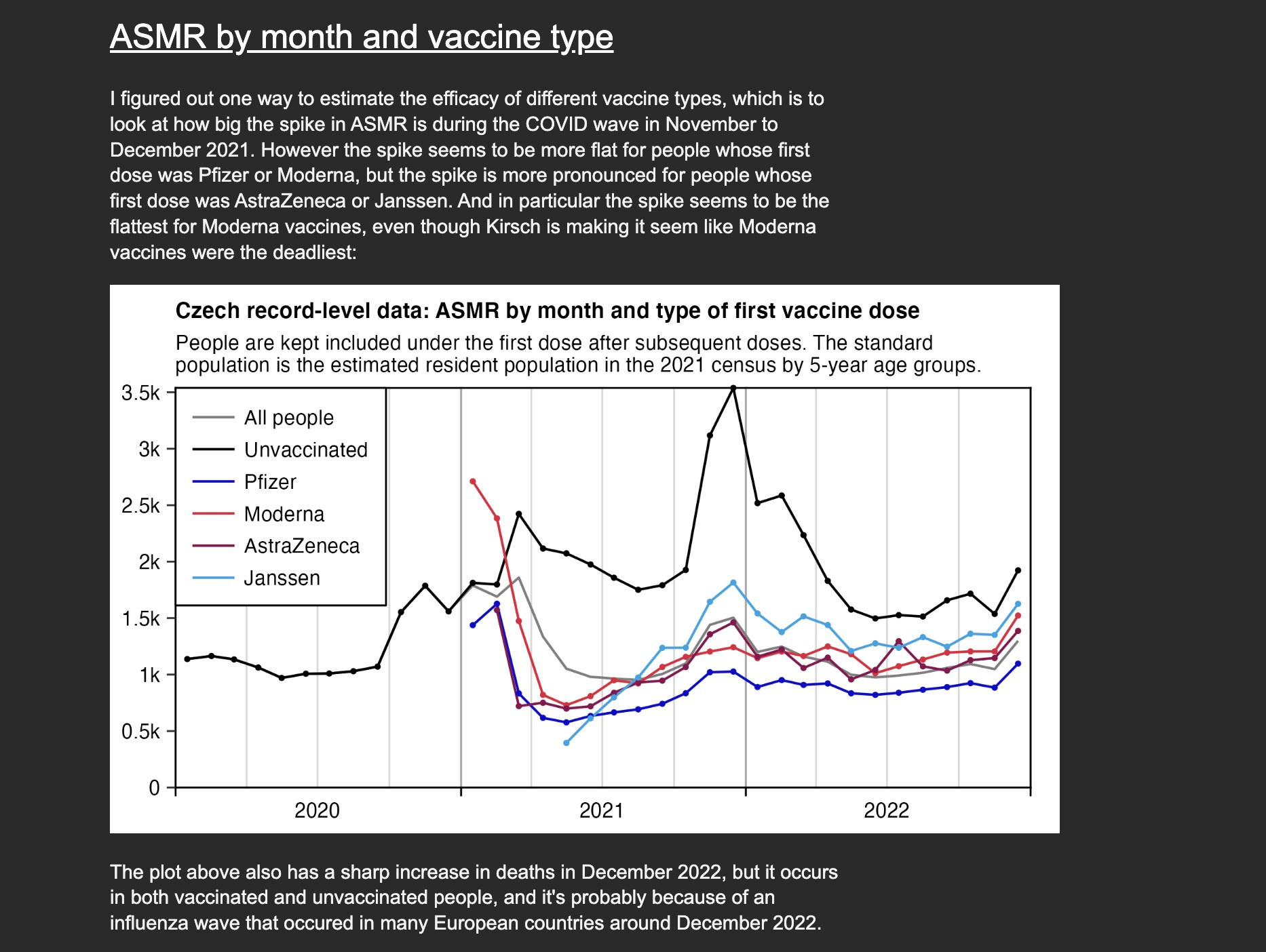 If you look at the ASMR during the COVID wave in December 2021 with the ASMR in July 2021, Moderna MR was only 1.3X higher and Pfizer was 1.5X higher so clearly Moderna provides a 20% higher relative mortality benefit during COVID than Pfizer does so the Moderna shots provide a COVID death benefit.