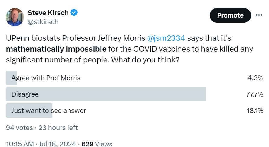 Yet we have a UPenn Professor of Biostatistics claiming that that deaths from the COVID vaccine are a mathematical impossibility. You can’t make this stuff up. That’s why I screenshotted his post above.