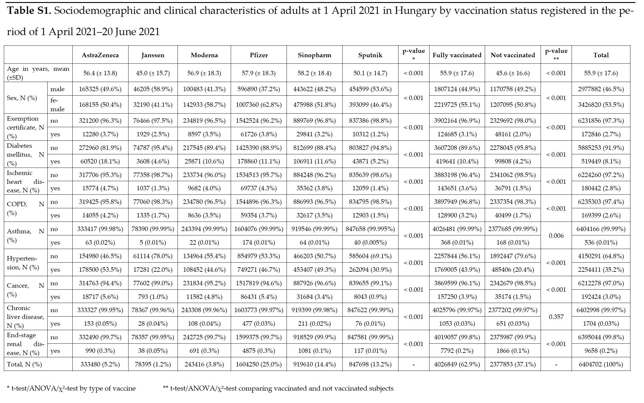 We have no way to know if the Czech comorbidity distribution of the various vaccine brands is anything like the Hungary distribution which shows massive differences outside of age.