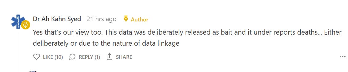 More likely than not, they were paid by Big Pharma to make up a fake rebuttal to your analysis. This reminds me of Pfizer making every effort to hide the data for 75 years. Why would anyone, or any company, try to get away with that if they were innocent and honest about what the data really says. These bastards have been lying since day 1. Given their corrupt mentality, and the deaths and harms that have come from it, they deserve a prison term for life with HEAVY fines.