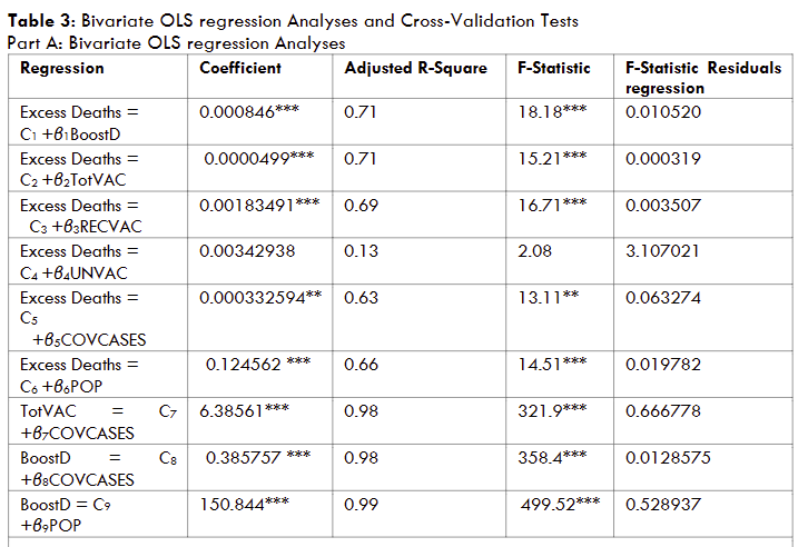 a strong correlation between the number of booster shots, total vaccinations, and recent vaccination relative to excess deaths