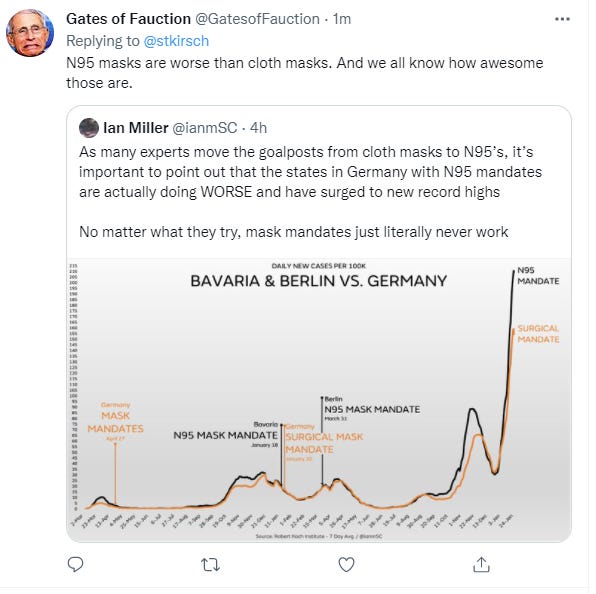 I think it is amazing how the population has been totally convinced that masks work against a virus. Even when you tell people the truth, they don’t believe you and they aren’t interested in seeing any evidence they are wrong.