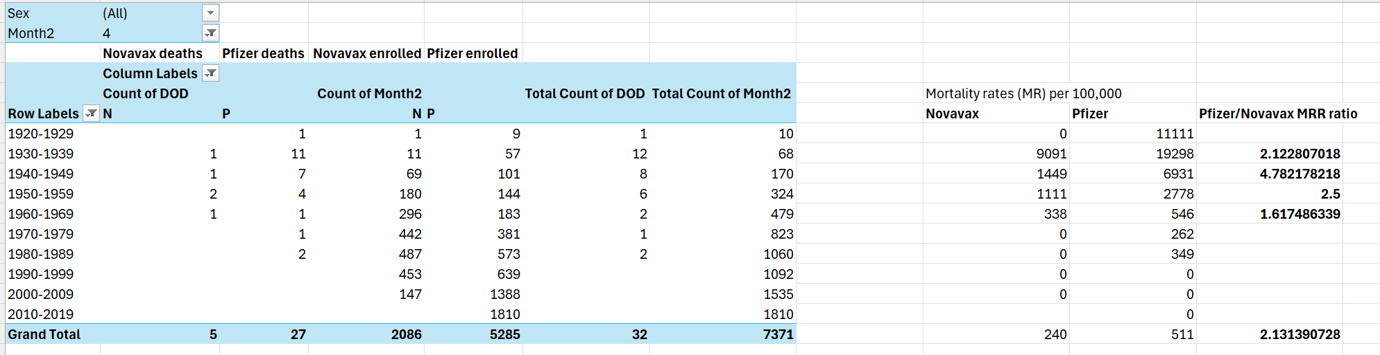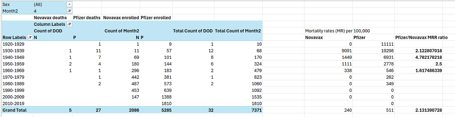 The Pfizer COVID vaccine is also too unsafe to use, but we don’t have enough data to accurately estimate how much it increases all-cause mortality. From the limited data, I believe it’s safe to say Pfizer appears to have at least 10% higher all-cause mortality than Novavax (that is a very conservative estimate since all the data was much higher than that), making Pfizer also completely unsuitable for public use.