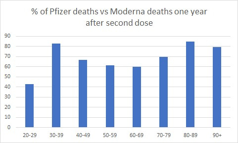 So even if the Pfizer vaccine was 100% safe, the Moderna vaccine should be immediately stopped as being far too deadly to use for any age group.