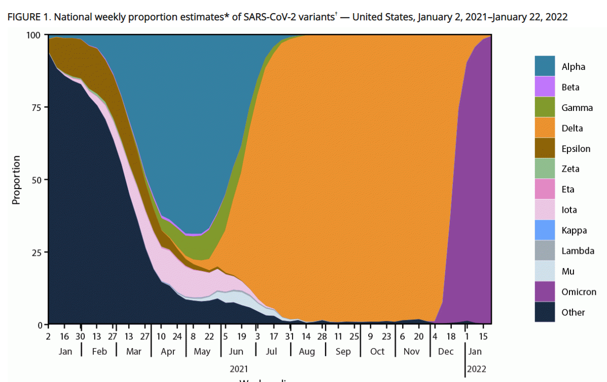 Here’s an idea how fast it could spread. Look at the slope of the purple curve… that’s Omicron. This is from a CDC paper. So expect the virus to spread everywhere in about a month.