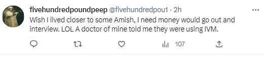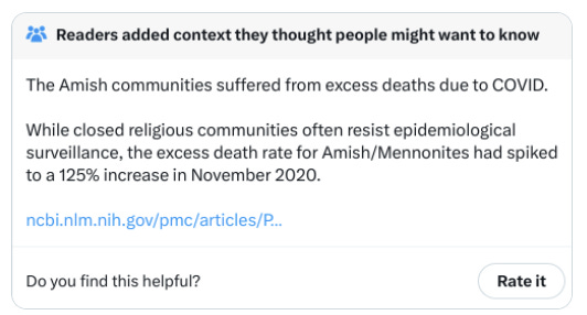 So far, nobody could name >5 unvaxxed Amish people in Lancaster, PA who died from COVID. In fact, they can’t name anyone. Zero.