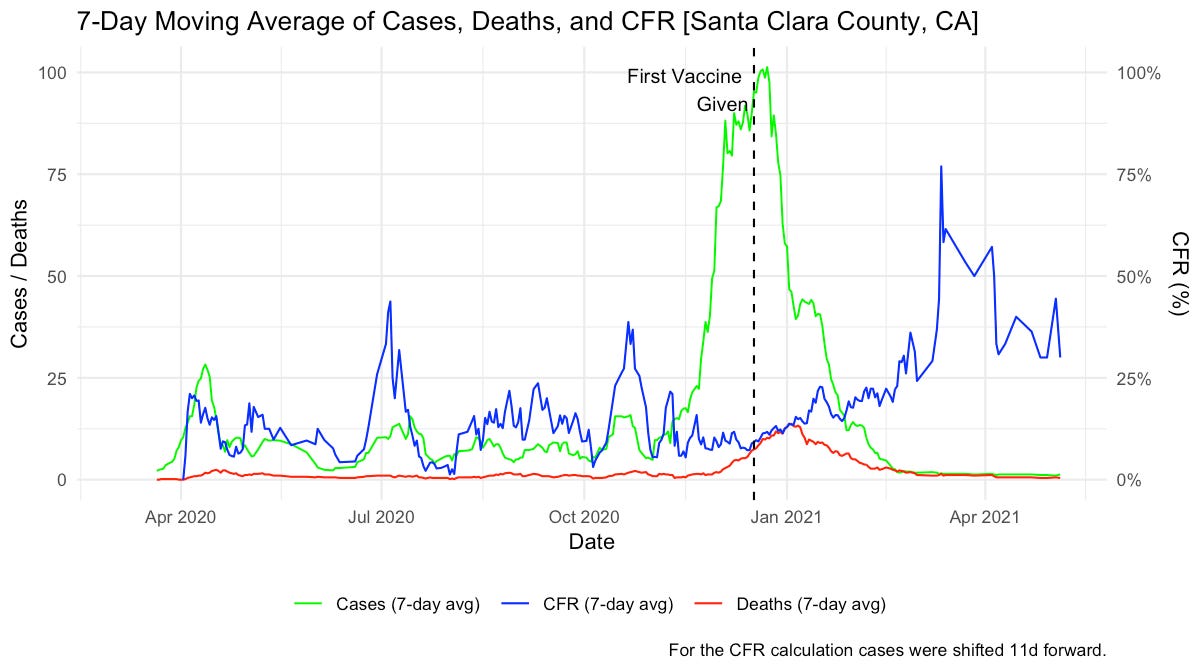 I've long argued that ignorance is a very dangerous attribute, and a 95% injection rate for Santa Clara indicates that ignorance is in full flower in that county. For me the big story coming out of the covid era is the stunning level of ignorance manifested by a large percentage of the population. Masks. Simple research reveals that even the best of them have 0.3 micron holes while viruses measure 0.1 microns. So wearing masks is like trying to catch mosquitoes using a barbed wire fence! Do people know things like this? No. They do not. Why don't they know? Mostly because they are gullible and lazy - too lazy to do a bit of basic research - and those things have cost lives. As I said, ignorance is a very dangerous thing. It can kill you.