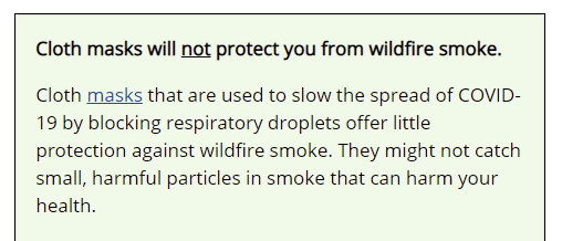 Until then, just remember that the CDC says masks don’t work for wildfire smoke and the virus is 25X smaller than a smoke particle. So it’s like trying to stop a mosquito with a chain link fence.