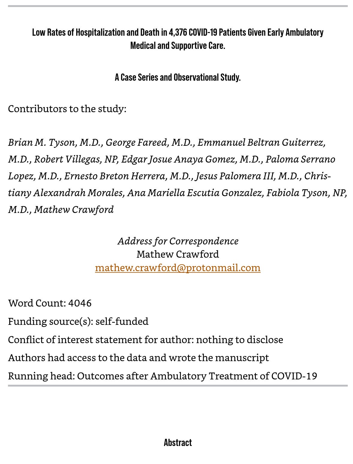 The paper is written up in Chapter 8 the book Overcoming the COVID Darkness.