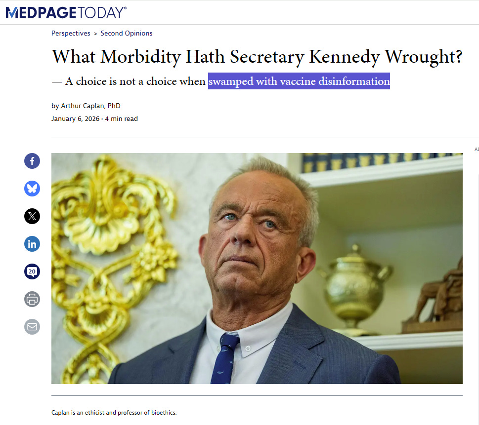 Dr. Arthur Caplan just penned a MedPage Today op-ed entitled "What Morbidity Hath Secretary Kennedy Wrought? — A choice is not a choice when swamped with vaccine disinformation."