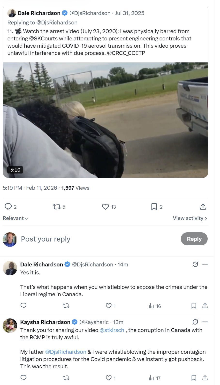 This sends a chilling message to anyone else in Canada. Do not tell the truth. Do what you are told. If you speak out, we will destroy your life just like we did to Dmitry and to Dale Richardson.
