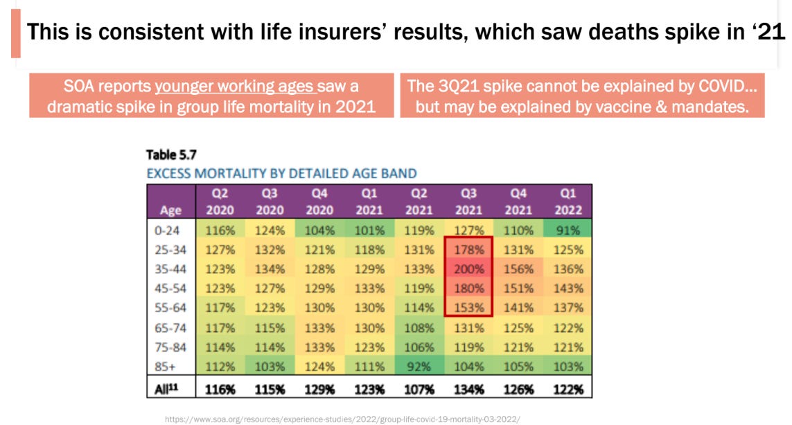“And the money chart is really Exhibit 4, which shows that the Millennial age group, 25 to 44 experienced an 84% increase in excess mortality into the fall. It’s the worst-ever excess mortality, I think, in history.