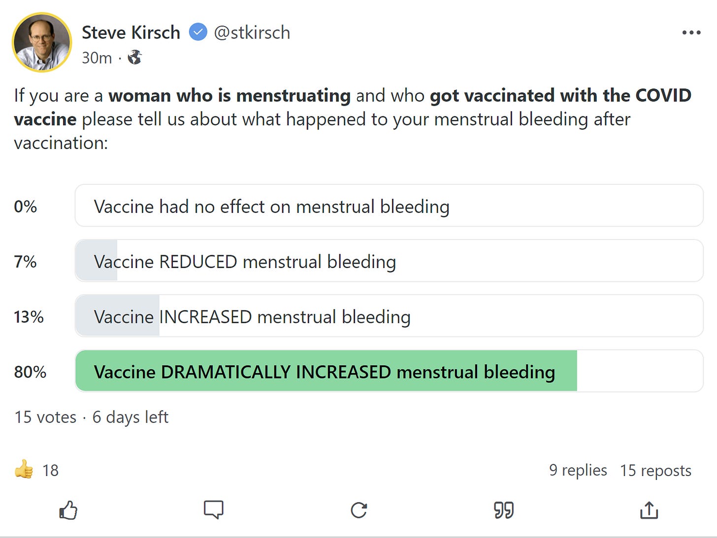 Since 2020, none of my readers knew of a single COVID death in kids 18 and under. But they know of 14 who appear to have been killed by the vaccine and I have the full story of all of them. I read through all the death reports. One of the death reports was clearly gamed in order to try to discredit the survey if it was included; the 14 remaining are real. In short, we are killing lots of kids to save no one from dying from COVID. We can’t even quantify how big this is; we suspect it is at least 14 to 1 but could be over 100 to 1. We don’t have enough data to quantify just how insane this is. We have totally lost it as a society that there are so many people who want to kill their own kids with these vaccines and we have a government that is egging them on to do so. Note: Of the 15 responses, one was gamed, one was a duplicate, and one reported 2 deaths.