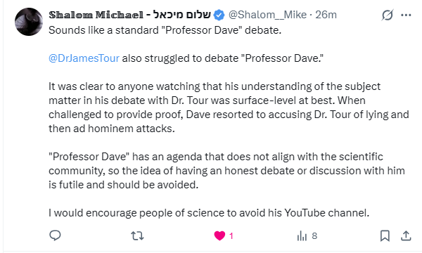 Since the debate, “Professor Dave” has subsequently produced defamatory videos claiming victory.