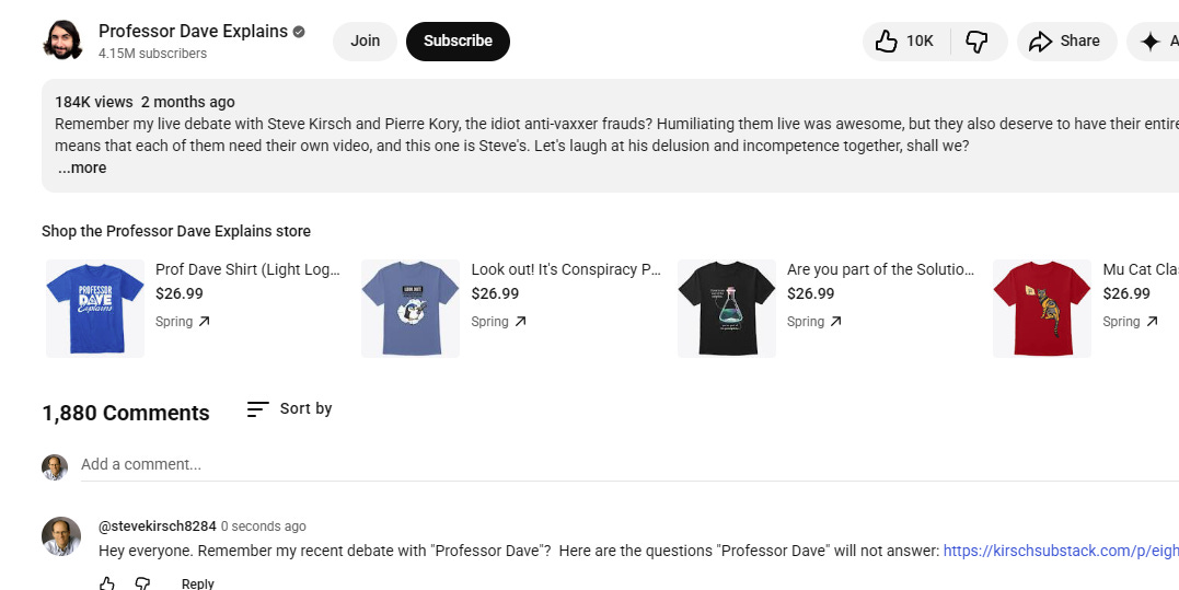 Pierre Kory and I recently debated “Professor Dave” (who isn’t a professor) and “Debunk the Funk” in a wide ranging vaccine debate.