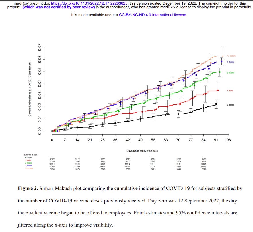 Finally, consider Table 2 of the Cleveland Clinic study. It shows that the more vaccines you get, the more likely you are to get COVID. This is because each dose of the vaccine reduces your overall immunity to everything, especially cancer.