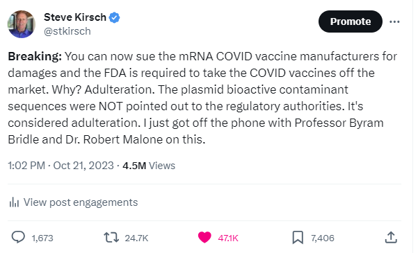 Steve, I was at Shannon Joy's "Summit for Truth & Wellness" yesterday in Rochester, NY. Both Dr. Robert Malone and Dr. Ryan Cole who were both guest speakers also talked about the FACT that the mRNA vaccines that were distributed to the masses were/are an ADULTERATED PRODUCT. There were about 500 of us in the live audience and tens of thousands of people watching online. Big Pharma IS NOT going to be able to keep this a secret for very long!