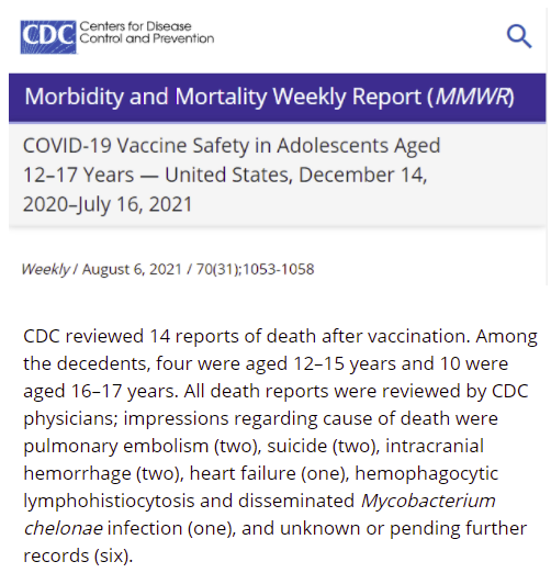 This is not an isolated incident of course. 2 of the 14 kids that the CDC looked at who died (ages 12-17) died from intracranial hemorrhage. It’s normally extremely rare (no recorded reports in the VAERS system in history for that age group), but it is a common, well-known side effect of the COVID vaccines for anyone who has been paying attention.
