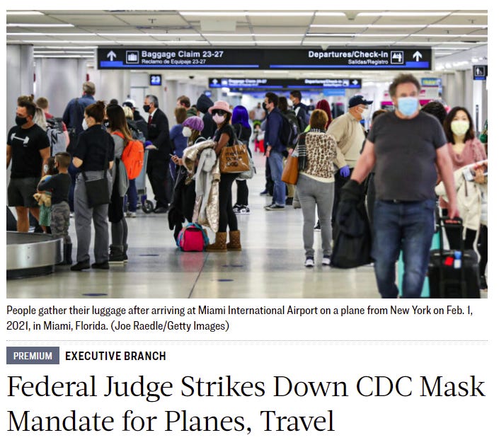 So it was nice to see that a Federal judge in Florida ruled today that the CDC overstepped their bounds in mandating masks without even bothering to seek any public opinion first.