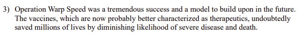 Reading through this report, and it's way more political than I wish it was. The section about the jab saving millions of lives is especially bad. I just can't see Trump admitting he was played like a fiddle.