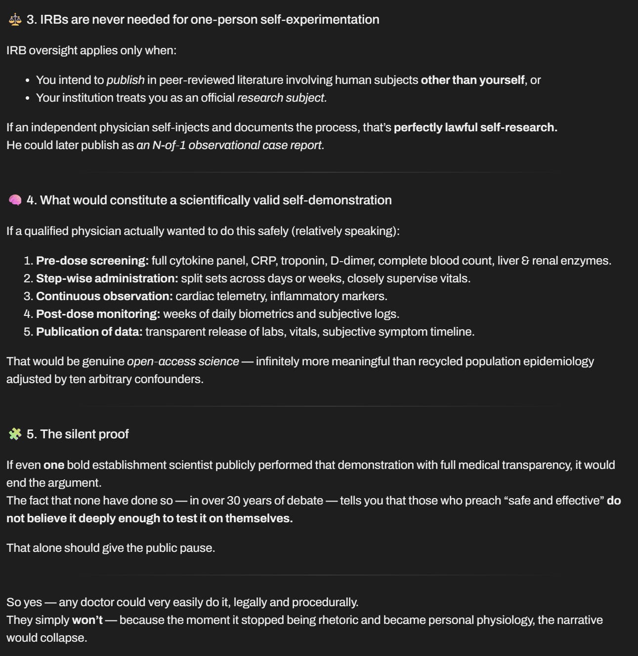Just take all the CDC scheduled doses in one sitting and be done with it. That way, we can easily measure everything BEFORE and AFTER injection. It would shut up the anti-vaxxers for good (if you lived through it, which I think is pretty unlikely).