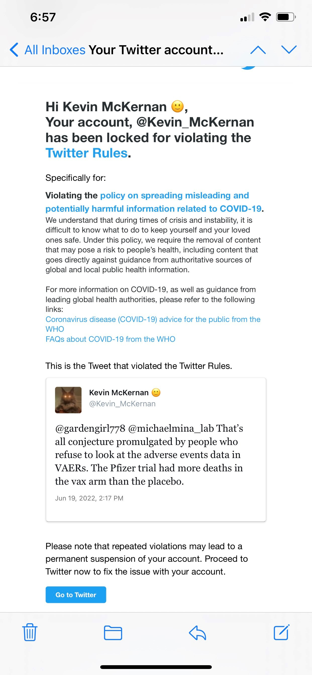 All the employees at Twitter believe whatever the WHO says is true and you are an evil person if you contradict them, even when citing obvious facts in the peer reviewed scientific literature.