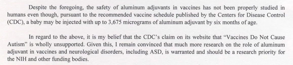 “CDC and NIH’s responses to ICAN’s Freedom of Information Act (FOIA) requests regarding aluminum adjuvant reveal a stunning admission: they do not have a single study to support the safety of recommending repeated injection of this cyto- and-neuro toxic substance as part of the CDC’s childhood vaccine schedule.”