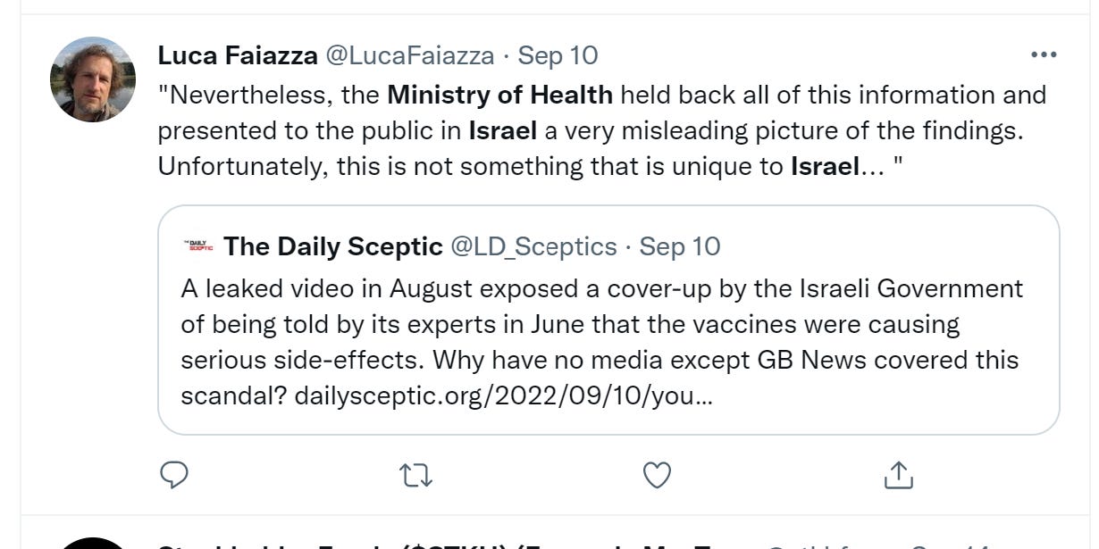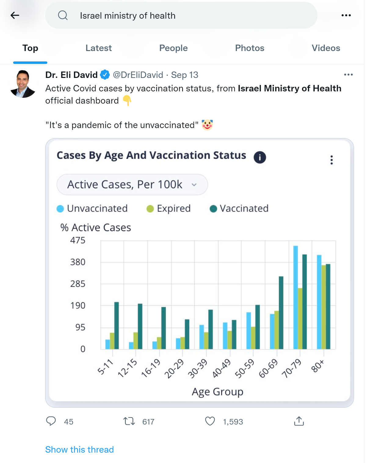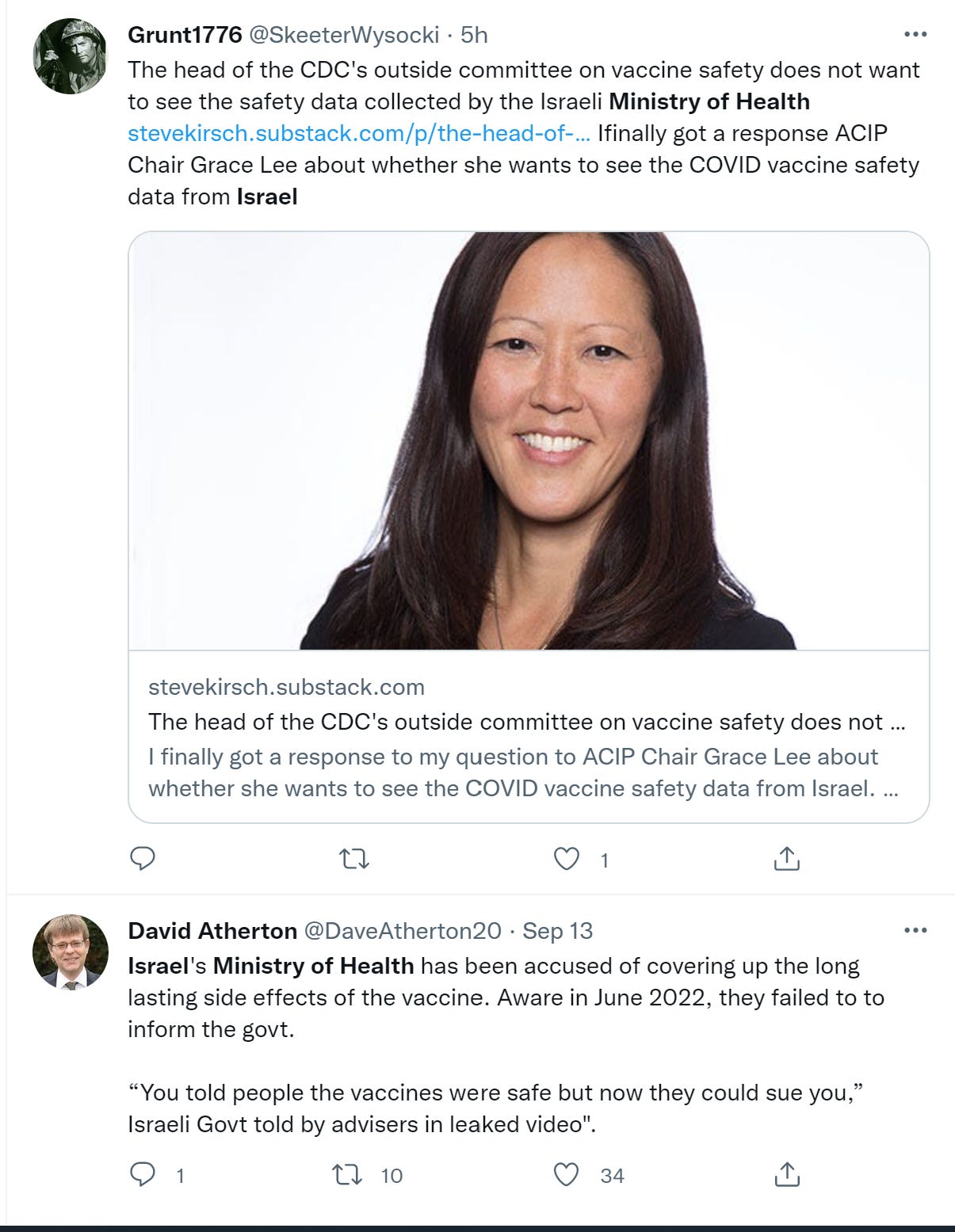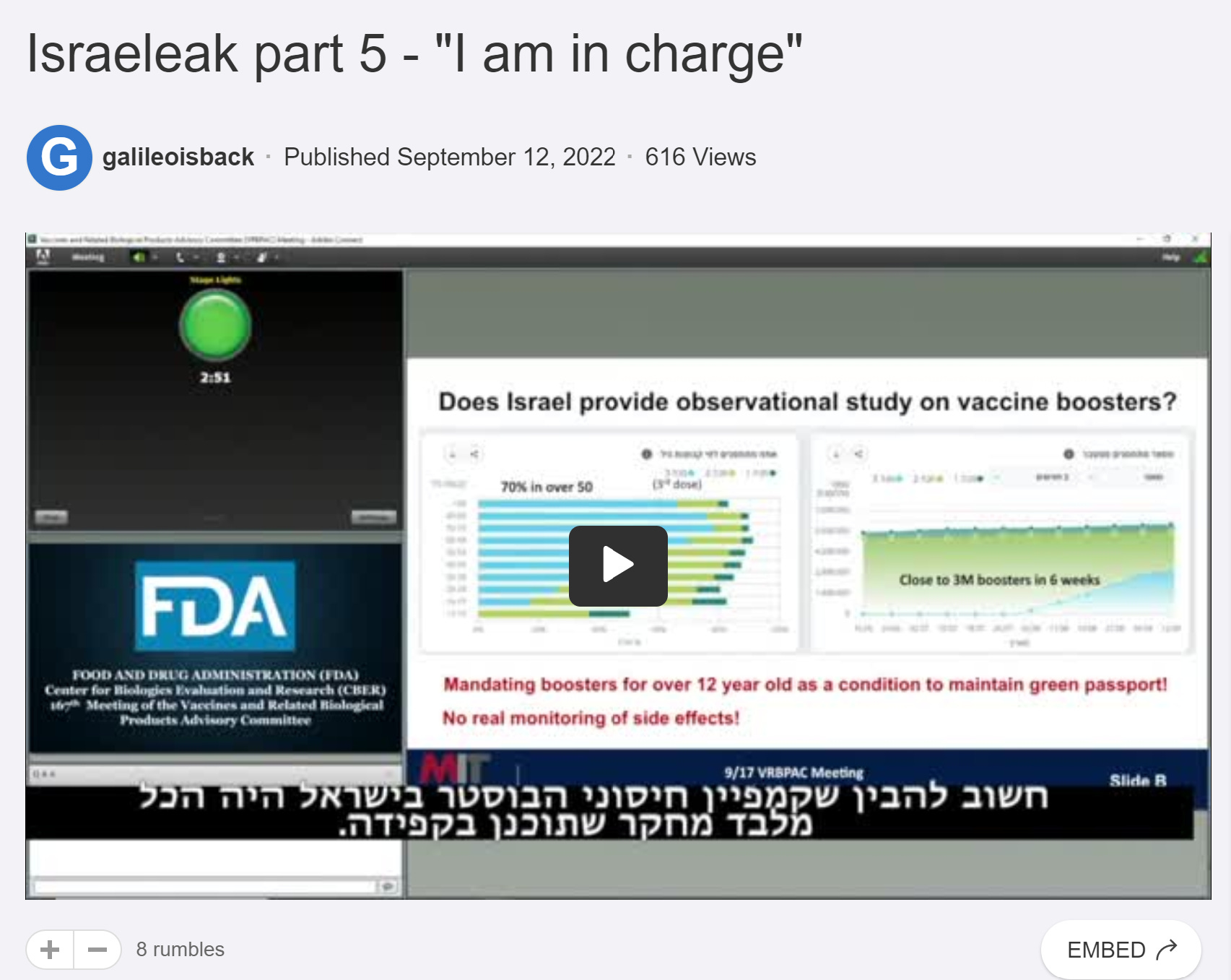 I'm sure Steve has made this point, but anything vaccine related with Israel is doubly significant because Israel started vaccinating people earlier than other nations and had achieved very high vaccination rates far earlier than most other countries. So Israel was really the guinea pig for the rest of the world. If their officials weren't concerned about safety data or were concealing this data, the people of every other nation need to know this.