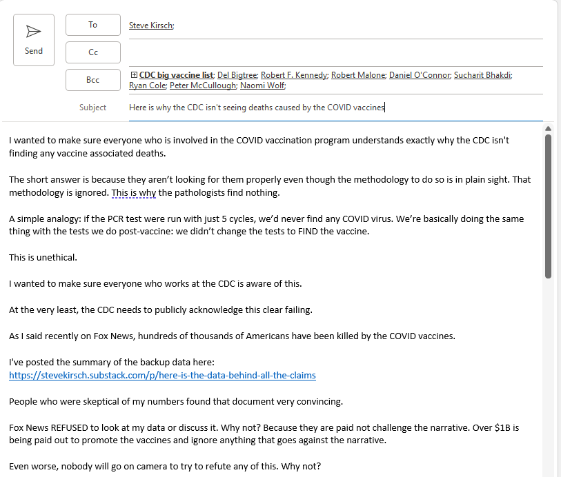 Here's the email I sent to hundreds of people at the CDC involved in the COVID vaccine program. Now they are on notice.