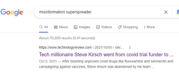 I have to be honest with you… Google considers me the world’s #1 misinformation superspreader: