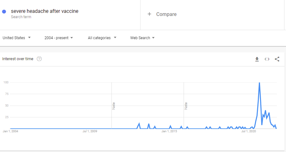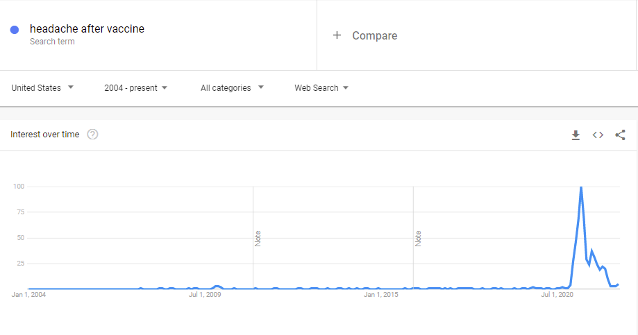 For some odd reason, “headache after vaccine” was just never a thing, but it started spiking after the COVID vaccines, not after any other vaccines.