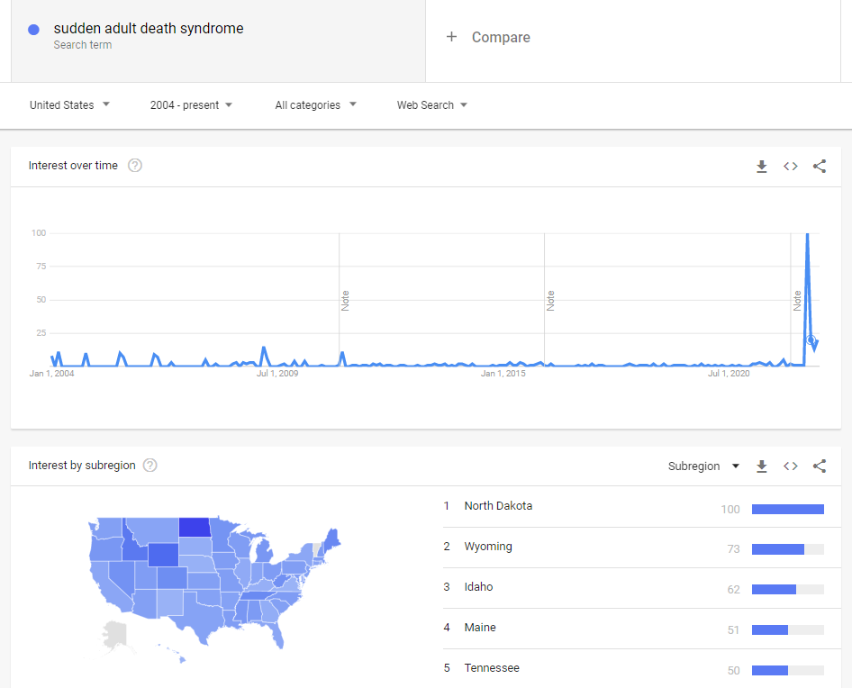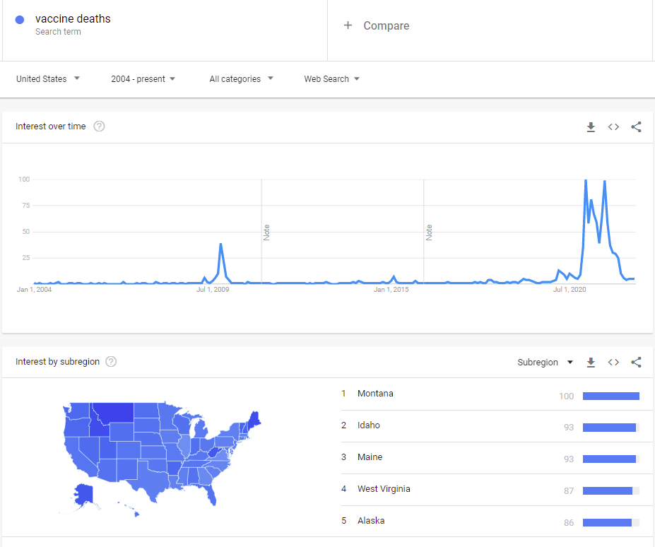 It never was a “thing” to search for this. But in Jan 2021, it suddenly became very popular!!! How can that be? The vaccines are safe and effective. Why would anyone be looking for vaccine deaths for this vaccine but for no other vaccine?