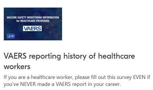 Even if you’ve NEVER made a VAERS report in your career, I still need you to fill out this survey now.