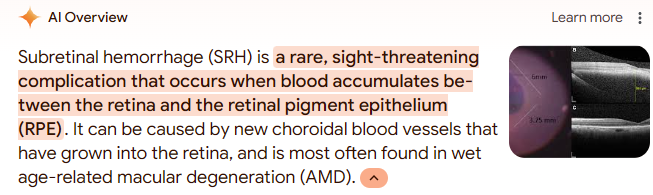 I have a subretinal hemorrhage (SRH).