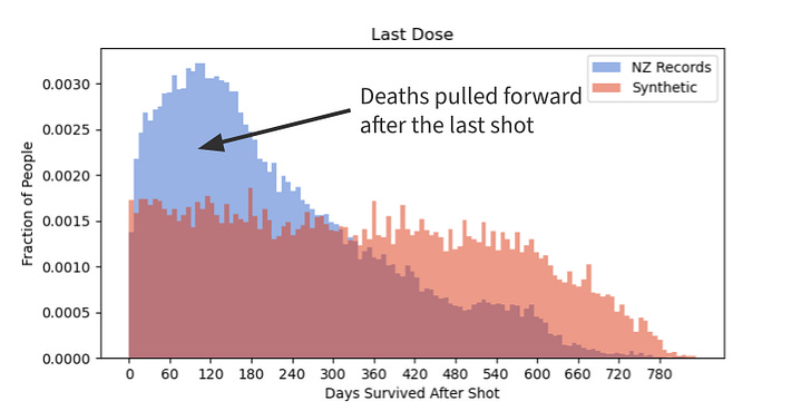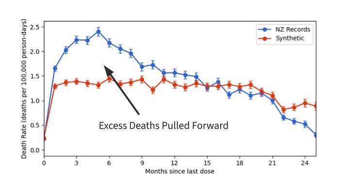 Turns out the vaccine increases death rates in the first 6 months after the shot which persists for about a year before going back to baseline. And it’s the last dose that kills you - pulling forward death into that first year post shot.