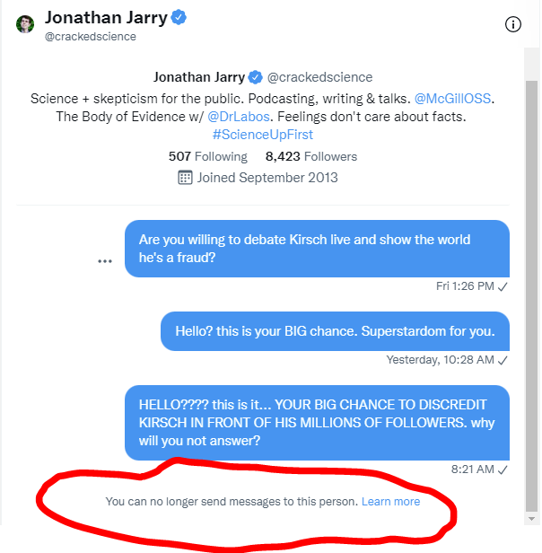 I offered McGill's Jonathan Jarry the opportunity to debate me LIVE so that he could discredit me in front of millions of my followers. I predicted he'd chicken out. It turns out I was right.