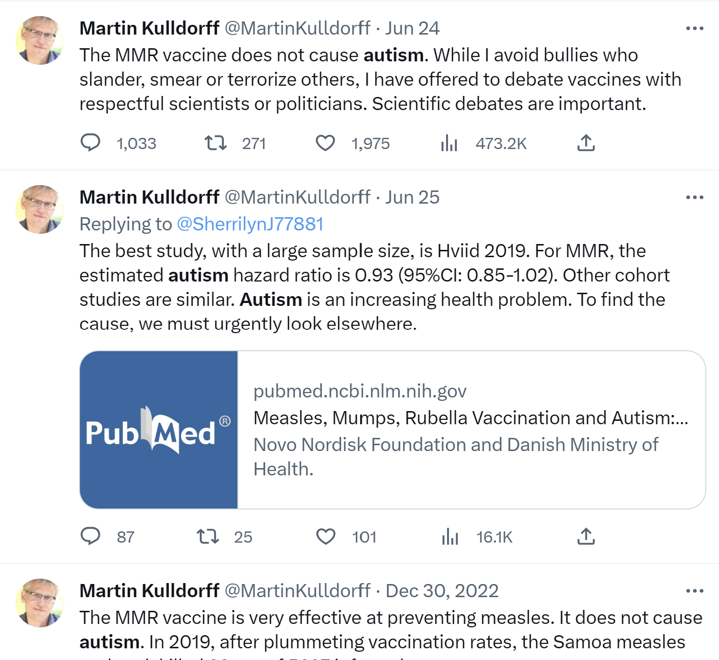 Martin Kulldorff believes it is settled science that the MMR vaccine doesn’t cause autism. He’s wrong.