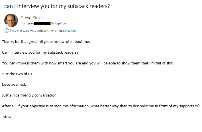 This is Jonathan’s hit piece on me that he wrote in (what I believe is) his blog “Critical Thinking” which is an interesting choice for a name since it’s clear Jonathan is sorely lacking in that area (read his articles on VAERS and on masks, for example). He even goes after JP Sears. Wow.