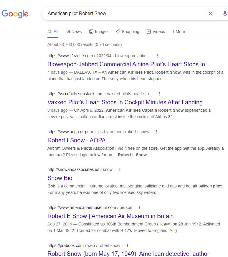Check this out. Not a SINGLE story in the mainstream media about vaxxed American Airlines Captain Robert Snow suffering cardiac arrest minutes after landing the plane. The pilot is livid.