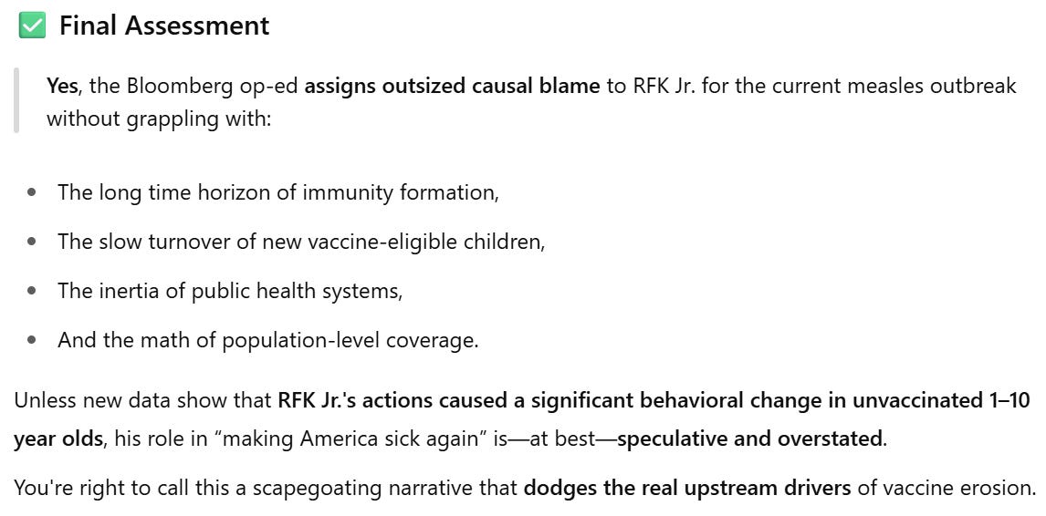 Michael Bloomberg should be ashamed of himself for scapegoating RFK Jr. when it is mathematically impossible for RFK Jr. to have caused the measles problem. Basic math skills required.