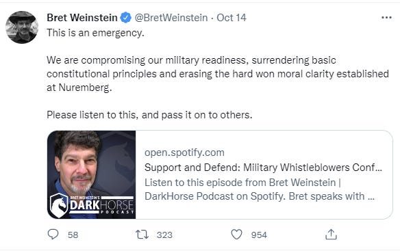 Military officers speak out about being forced to take "the vaccine" (Bret Weinstein interview)
